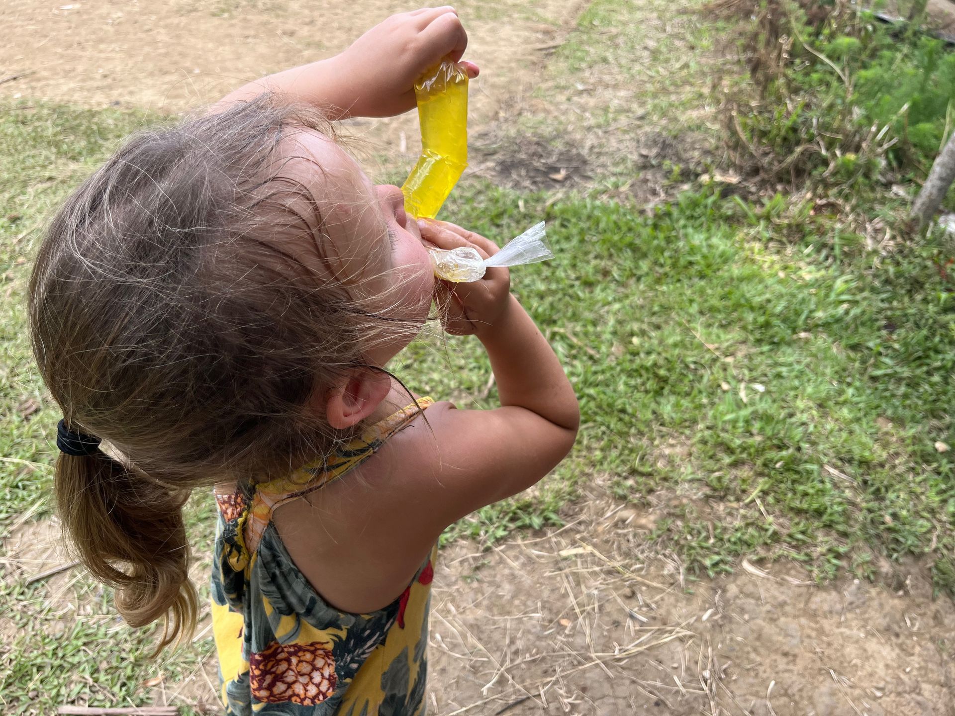 We bought an otter pop at the market next to the festivities. Of course, with no refrigeration they are just bags of juice!