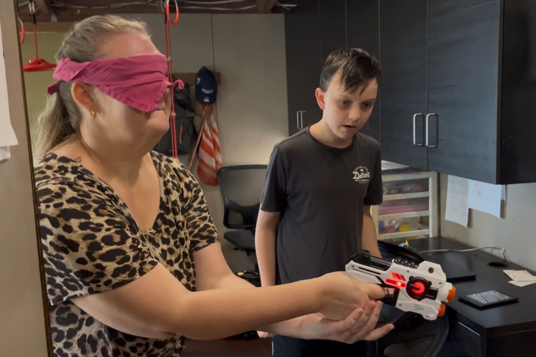 Oliver organized and created three games: D&D Bingo, a photo scavenger hunt, and blind-folded laser tag: